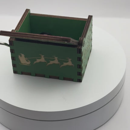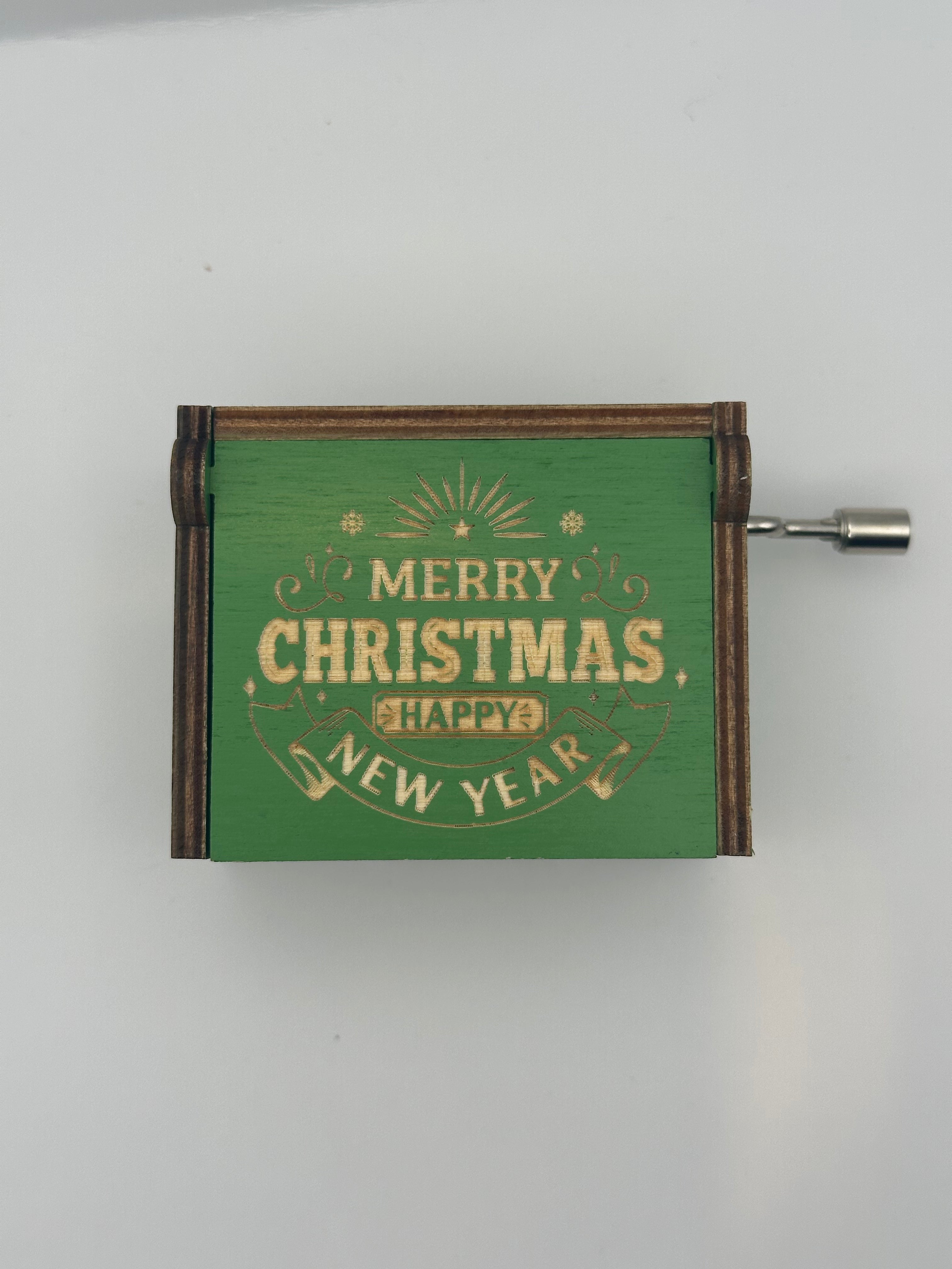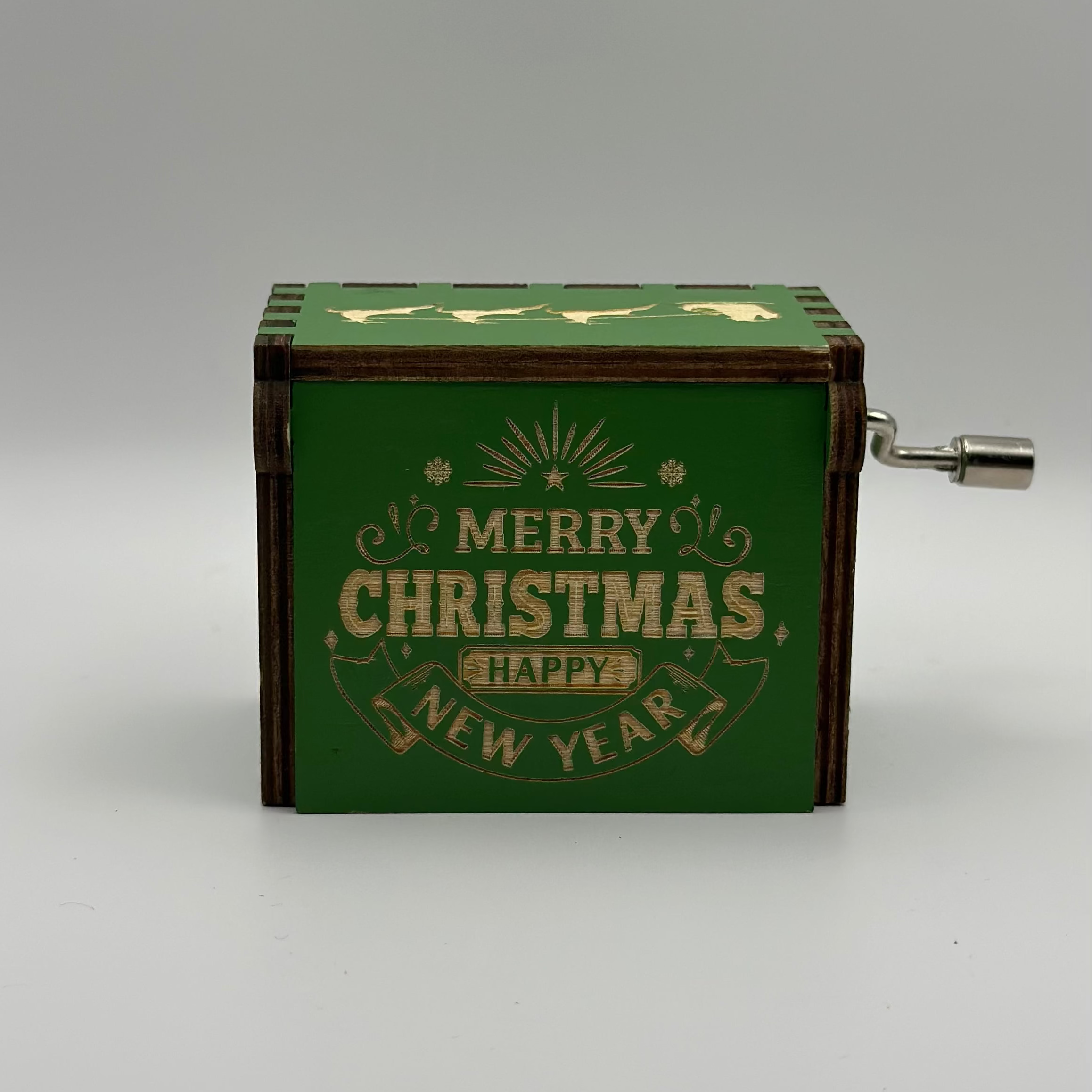 Carillon Natalizio in Legno Verde – Scatola Musicale con Manovella Tema Merry Christmas
