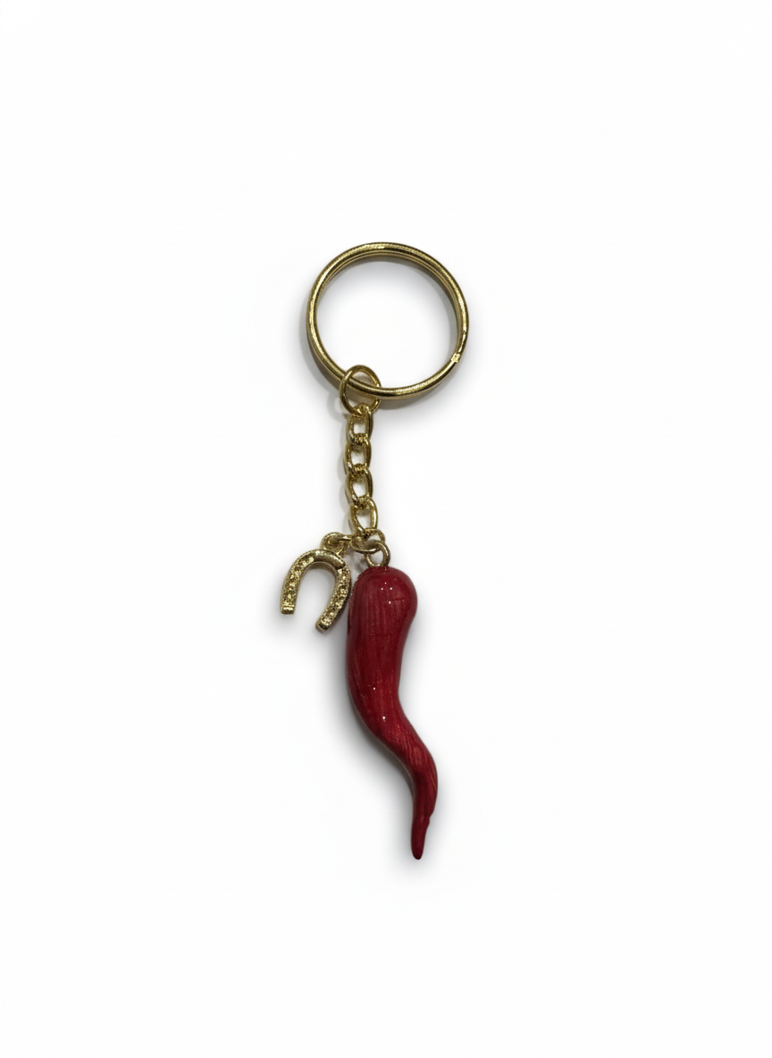 Cornetto Portafortuna Artigianale con Ferro di Cavallo (Oro) – Portachiavi Amuleto Fatto a Mano