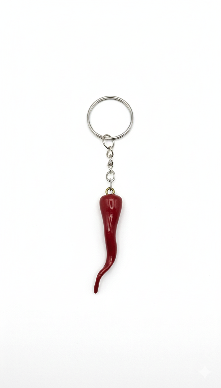 Cornetto Portafortuna Artigianale (Argento) – Portachiavi Amuleto Fatto a Mano