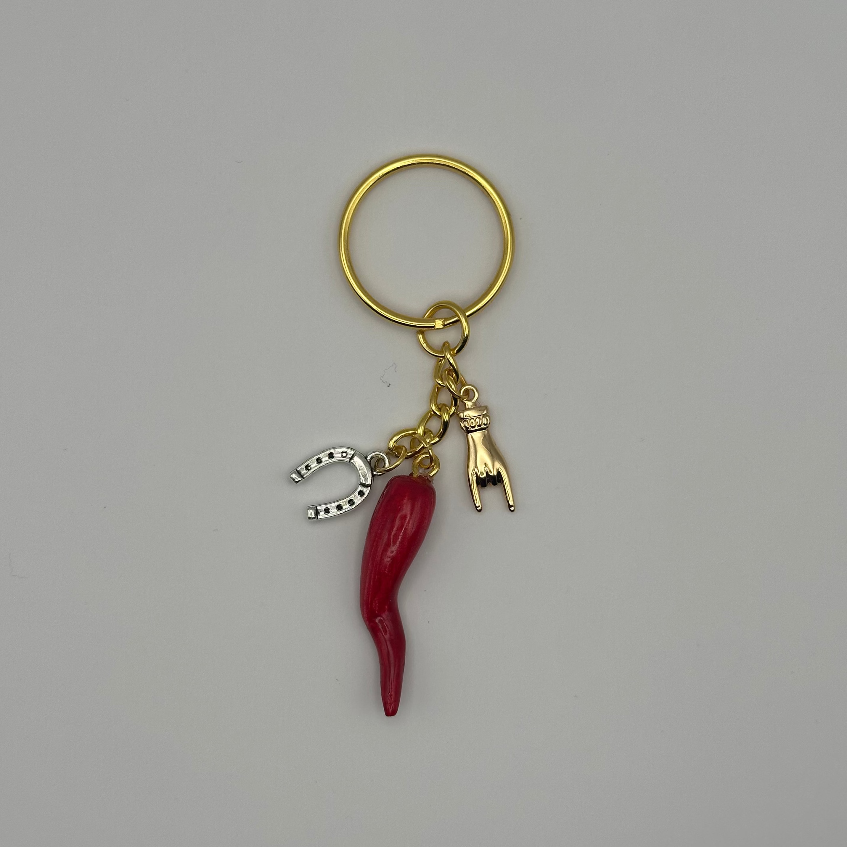 Cornetto Portafortuna Artigianale (Oro e Argento) – Portachiavi Amuleto Fatto a Mano