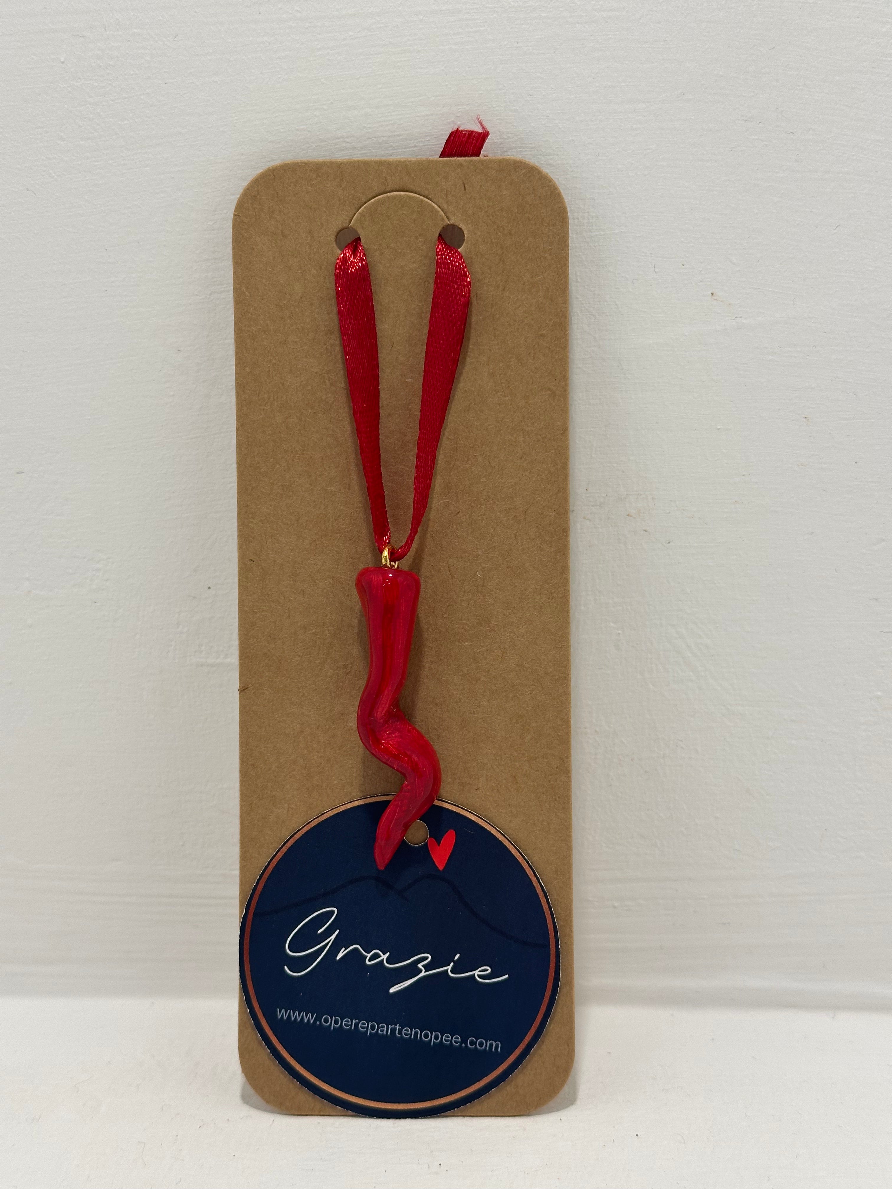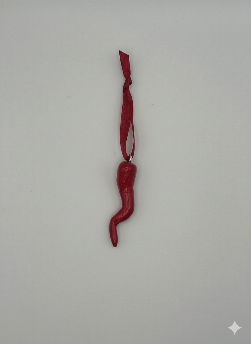 Cornetto Portafortuna Artigianale (Semplice con seta rossa) – Portachiavi Amuleto Fatto a Mano