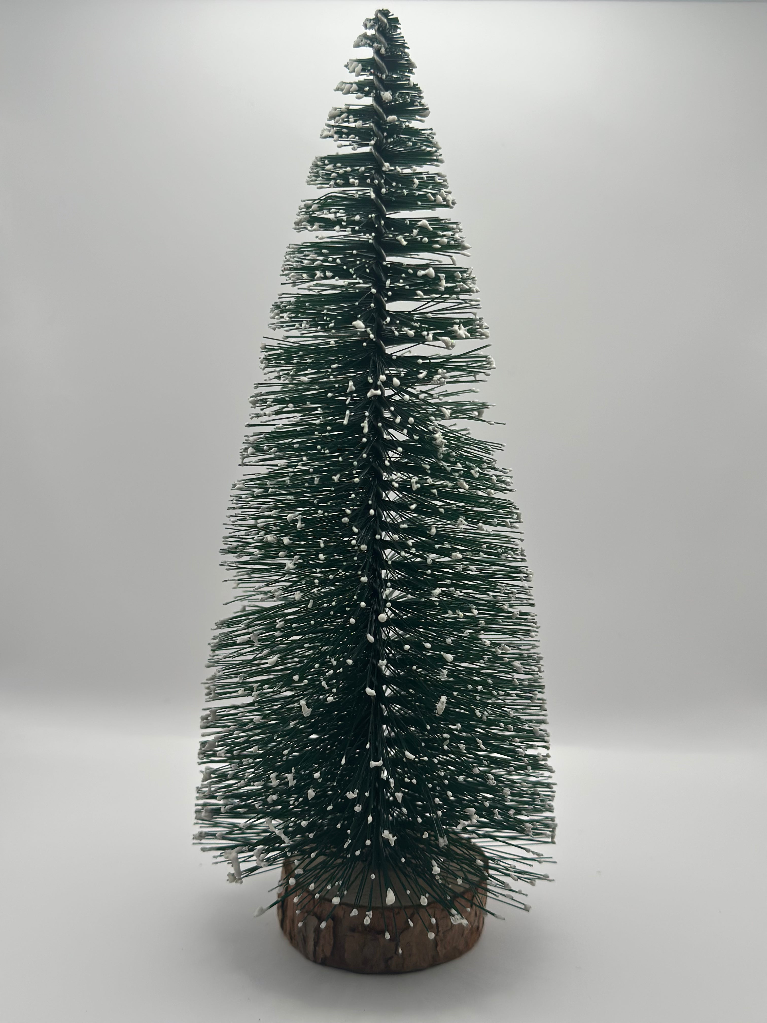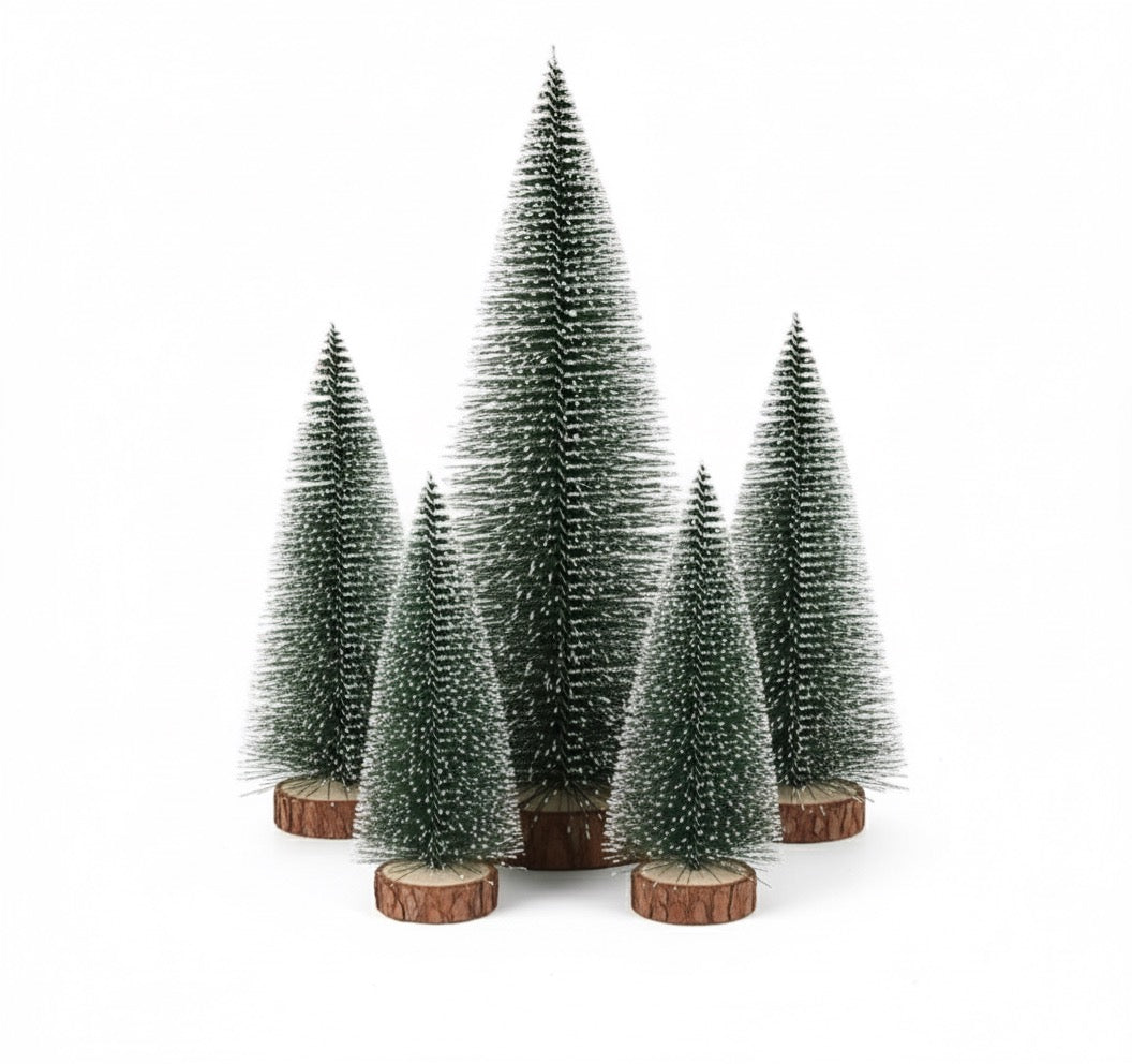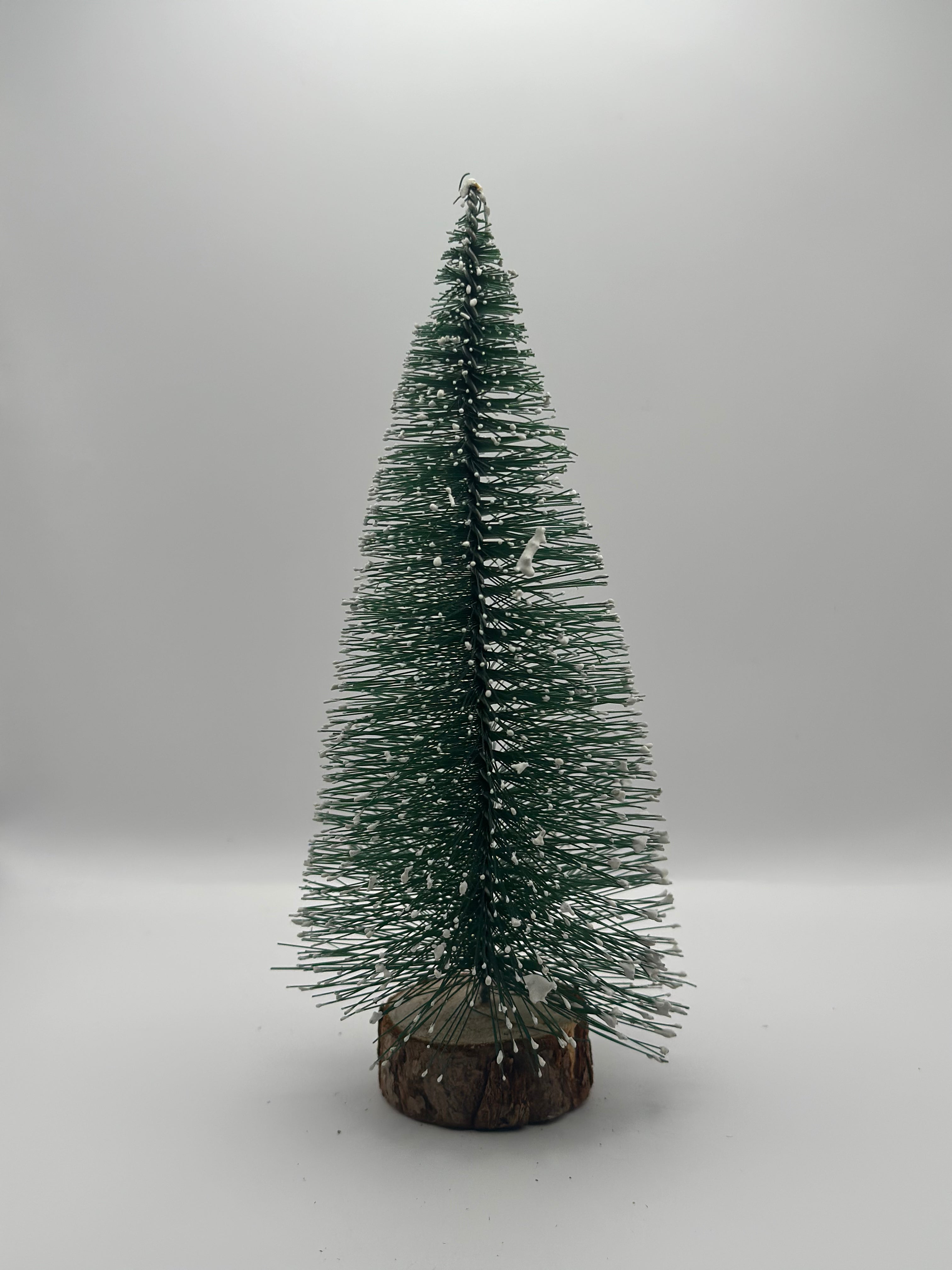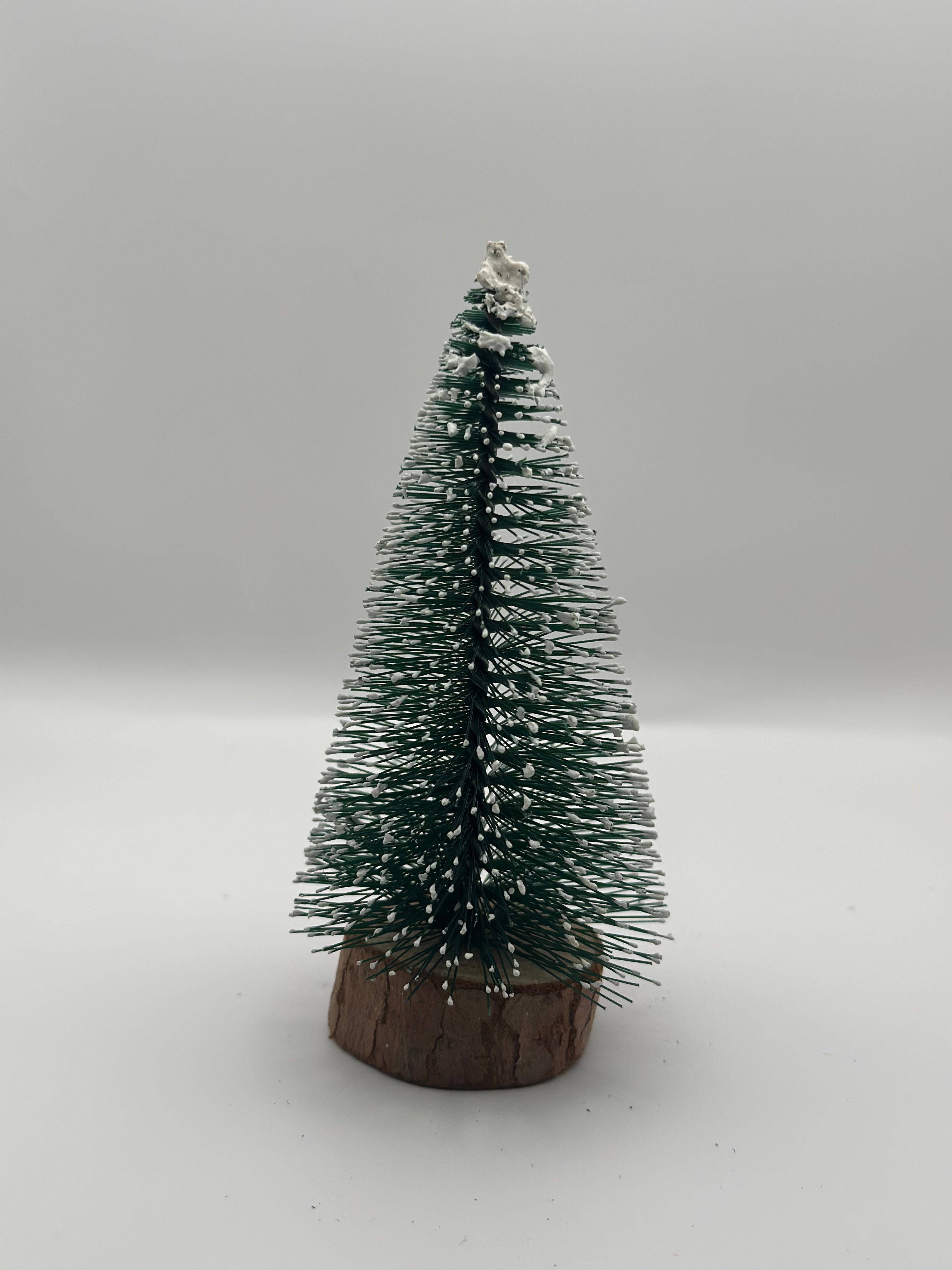 Mini Albero di Natale Effetto Neve su Base in Legno Naturale - 5 Altezze a Scelta