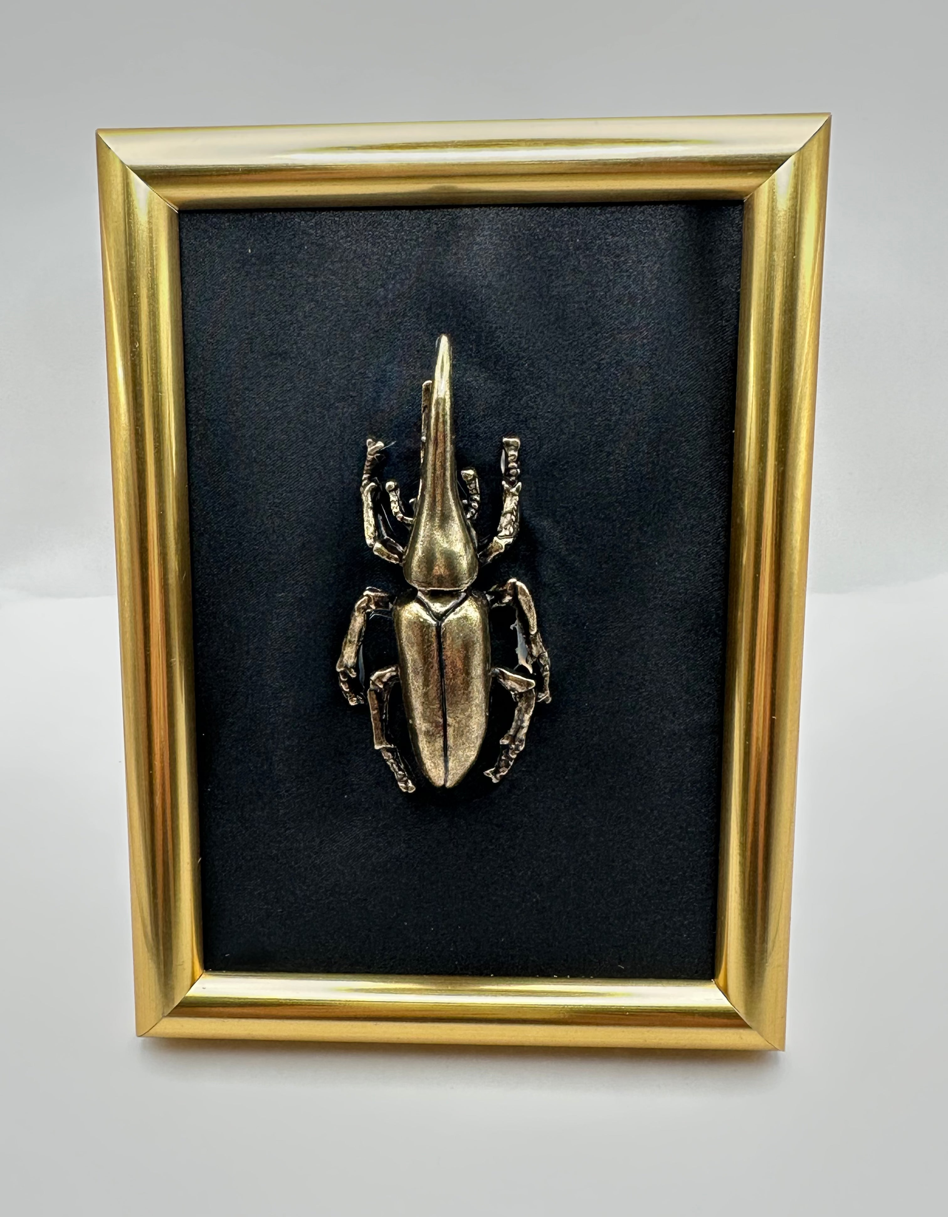 Quadro 3D Maggiolino Rinoceronte in Cornice Verticale Oro – Fatto a Mano, Decorazione Appesa/Mensola