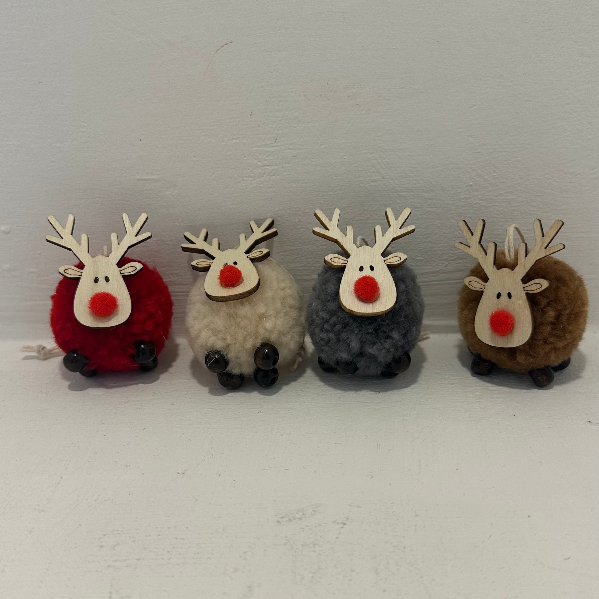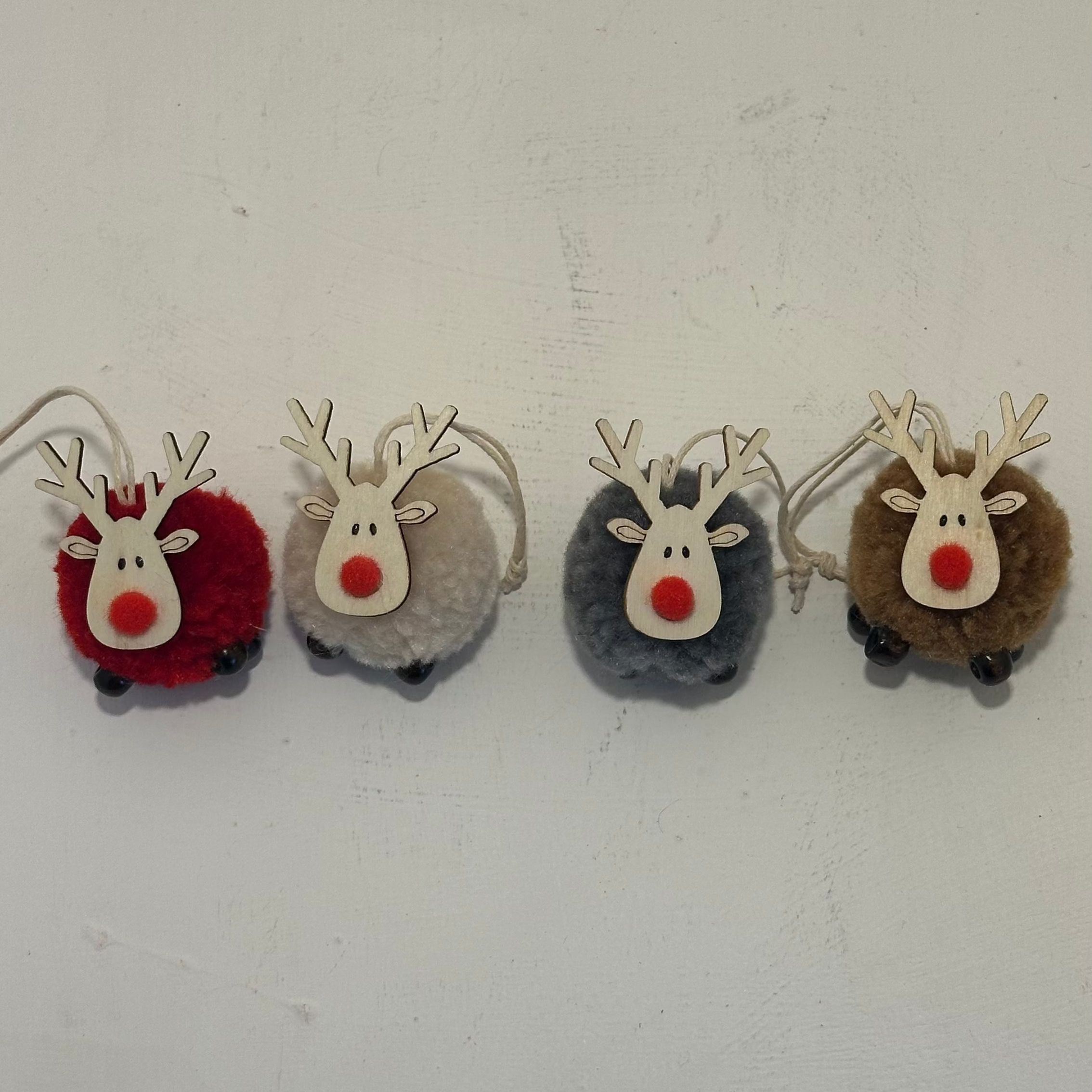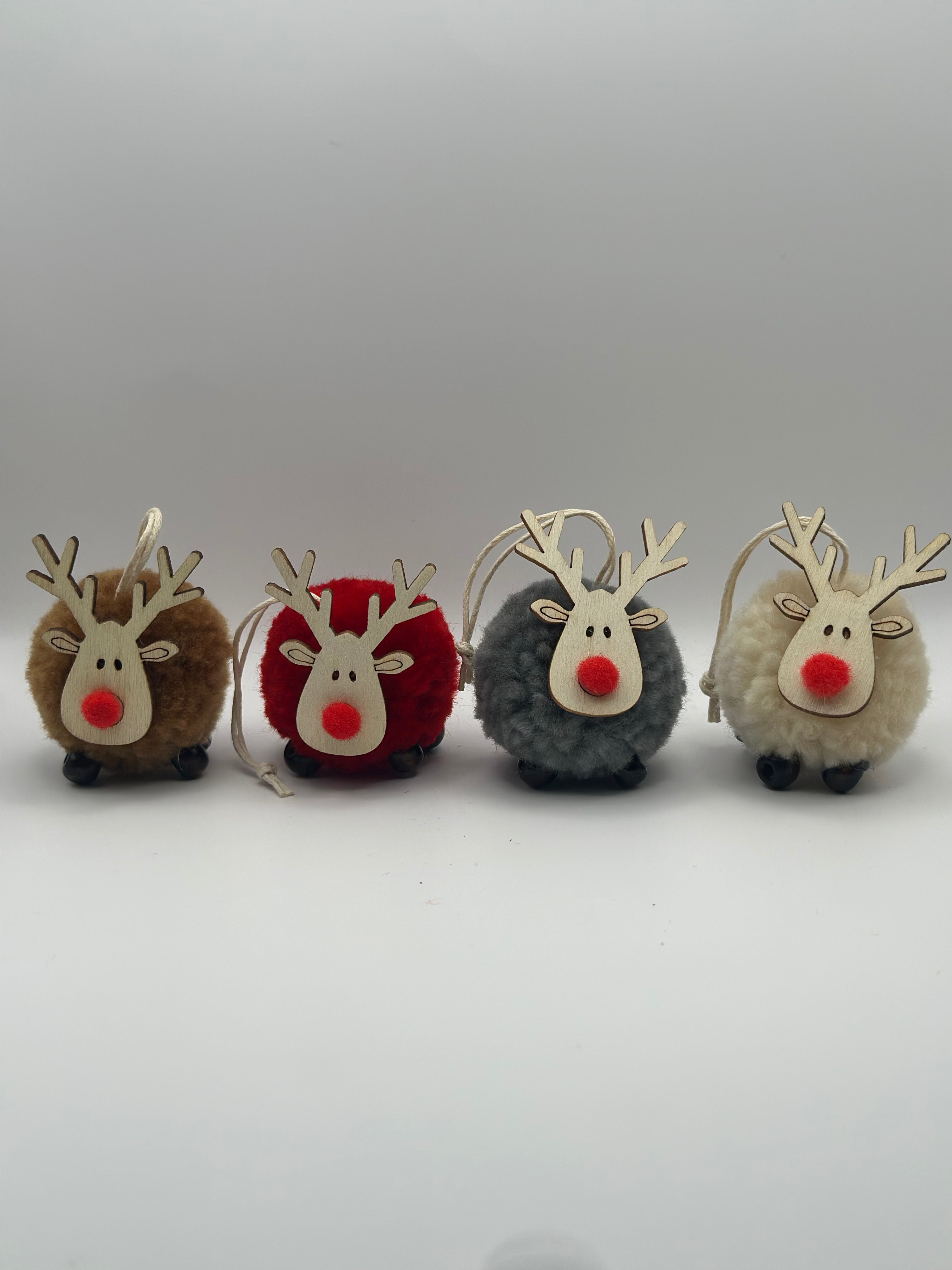 Design Unico: Ogni renna presenta un corpo rotondo e soffice, realizzato in morbido tessuto effetto pelliccia, che evoca l'aspetto di una tenera renna, impreziosito da simpatiche corna in legno che le trasformano in un irresistibili addobbo natalizio.