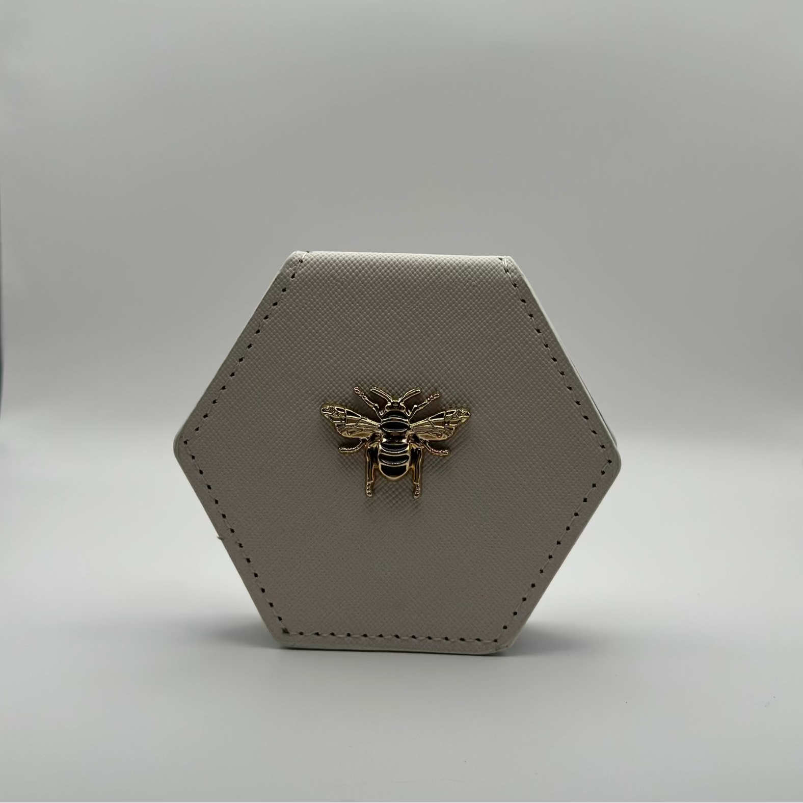Specchietto da Borsa Esagonale in Similpelle – Con Dettaglio Ape (Nero, Rosa, Panna)